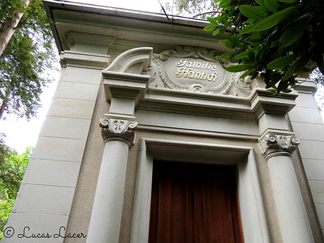 Dominantou hřbitova jsou tři majestátní hrobky významných německých podnikatelských rodin, jejichž stavba je datována do dob prvorepublikových. Každá je svým charakterem specifická a od ostatních architektonickým zpracováním i atmosférou zcela odlišná.